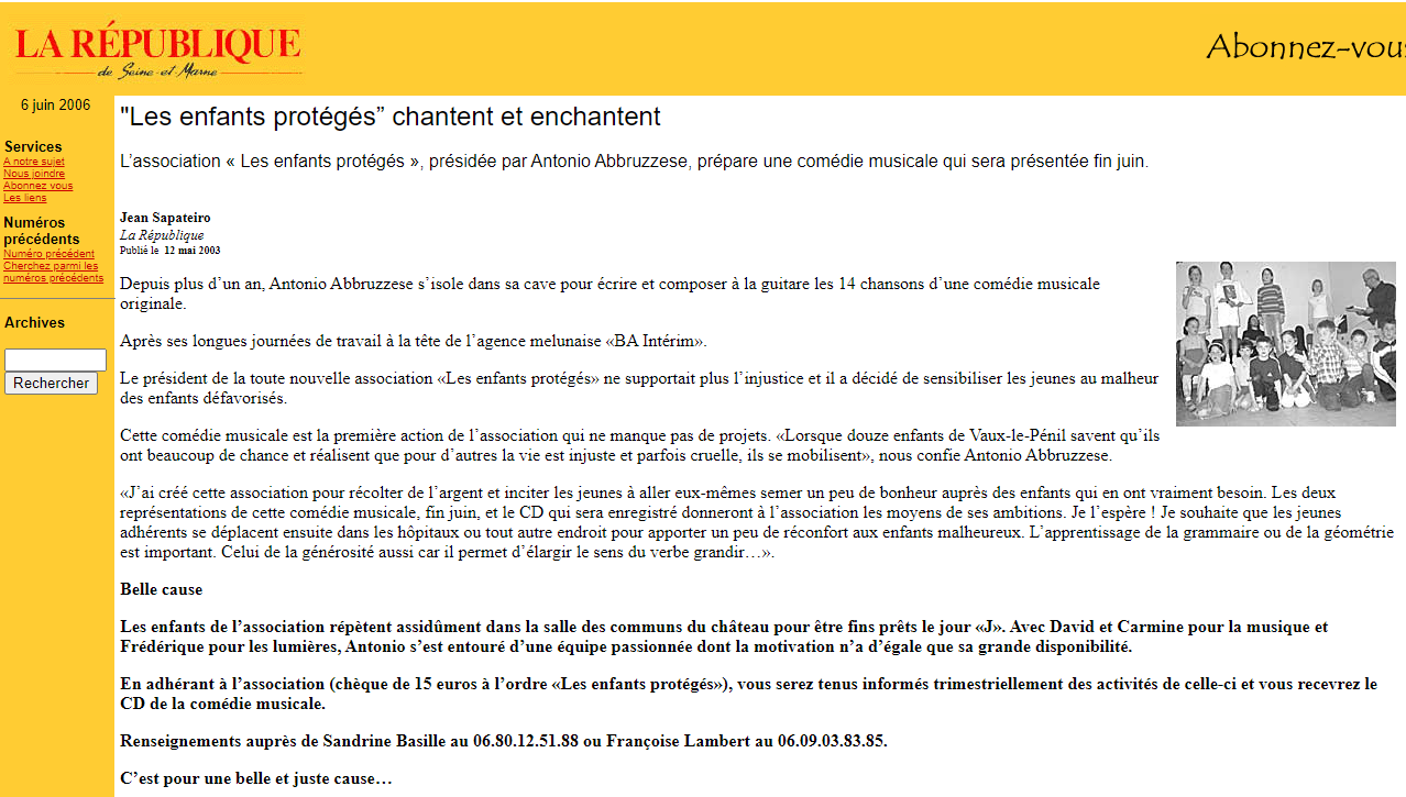 Article De Presse Sur Les Évènements Organisés Par "Les Enfants Protégés" :